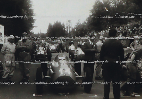Konvolut 56 original s/w Aufnahmen überwiegend F1 50er - 60er Jahre, darunter z.B. GP Penya Rhin 1951, u.a. Ferrari 375 von Alberto Ascari; 5. RAC British Grand Prix u.a. Aufnahmen Ferrari 500 in der Boxengasse; Alberto Ascari auf Ferrari 500; Taruffi auf Ferrari 500; Cooper T20 von David Murray in... mehr