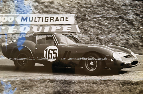 Original s/w Aufnahme Ferrari 250GTO (#4153GT) der Siegerwagen der Tour de France 1964, bei Trainingsfahrten in Monza, schöne Aufnahme, 13x18cm