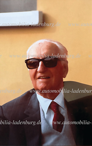 Original Farbaufnahme Enzo Ferrari in den späten 70er Jahren, gestempelt „Enzo Giovanelli“, 13x20cm