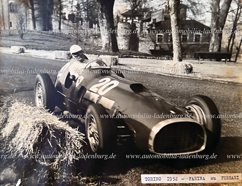 Original s/w Aufnahme Farina auf Ferrari 375, 1952 Valentino Grand Prix, 18x23,5cm, seltene Aufnahme