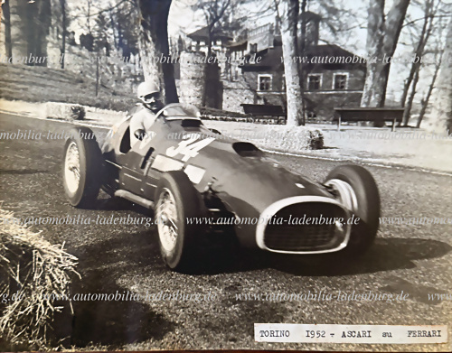 Original s/w Aufnahme Alberto Ascari auf Ferrari 375, 1952 Valentino Grand Prix, 18x23,5cm, seltene Aufnahme
