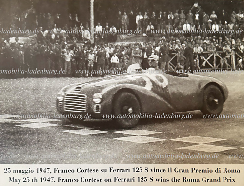 s/w Aufnahme von Zeitungsausschnitt (späterer Abzug), Cortese auf Ferrari 125S, 1947 Grand Prix Rom, 18x24cm