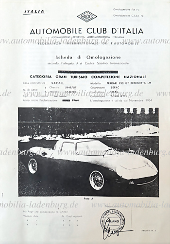 Kopie „Scheda die Omologazione“ Ferrari 250LM (#5149GT)