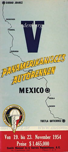 1954, Reglement "V Panamericana Mexico", beschriftet mit "V Panamerikanisches Autorennen Mexiko", deutsche Ausführung, sehr selten, sehr guter Zustand
