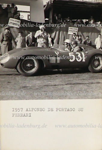 Original s/w Aufnahme de Portago / Nelson auf Ferrari 335 (#0646), Mille Miglia 1957, 10x14cm
