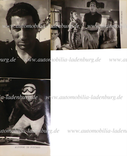 Konvolut 3 original s/w Aufnahmen, Alfonso de Portago, ein Foto zeigt Portago mit Castellotti und Linda Christian, 10x14cm
