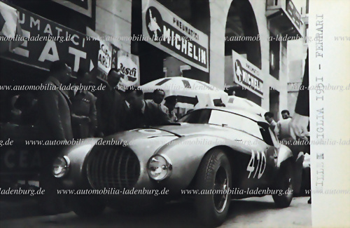 original s/w Aufnahme, Giannino Marzotto in seinem Ferrari 166MM "Uovo" (#024MB) Mille Miglia 1951, 10x14cm
