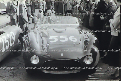 original s/w Aufnahme, Eugenio Castellotti auf Ferrari 290 MM Spyder Scaglietti (#0616), Mille Miglia 1956, 14x10cm
