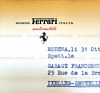 31.10.1955, handsigniertes Schreiben von Enzo Ferrari an Garage Francorchamps, betreffend Namensgebung der Ferrari 250 Modellreihe, zu Beginn bestätigt Enzo Ferrari die CSAI-Homologation des Ferrari 250 Europa G.T, in der Gruppe der Serien-Gran-Turismo Fahrzeuge. „Dieses Fahrzeug nimmt daher ab... mehr