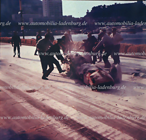 Original Farbpositiv Lorenzo Bandini im verunfallten Ferrari 312/67, GP Monaco 1967, 6x6cm, schockierendes Foto