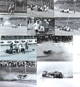 Konvolut 10 teilig, darunter 9 original s/w Aufnahmen sowie 1 Foto neueren Datums, Unfallaufnahmen von Jochen Rindt auf Lotus 72c beim GP Italien 1970, verschiedene Formate