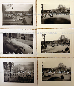 Konvolut 6 original s/w Aufnahmen GP Pau 1953, u.a. Ascari auf Ferrari 500, Hawthorn auf Ferrari 500, Behra auf Gordini T16, Johnny Claes10..., je 8x11cm