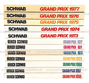 Bücherkonvolut 12 aufeinanderfolgende Ausgaben „Grand Prix“ von Ulrich Schwab von 1966-1977 de. Text