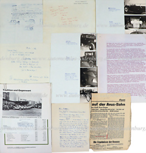 14 Seiten Aufzeichnungen, teilweise handschriftlich, darunter Lebenslauf August Momberger (Mercedes), einige s/w Aufnahmen, etc., interessantes Konvolut