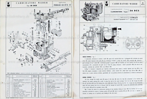 1965, 6 Seiten Ferrari Weber Vergaser Tipo 36 DCS für Ferrari 250 GT/E, Ersatzteilliste