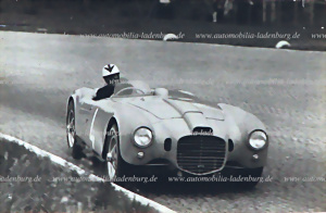 Archiv Richard von Frankenberg, Montlhery 1951, original s/w Aufnahme, Richard von Frankenberg auf Porsche 356 SL, Rekordfahrten Montlhery 1951, wunderschönes Foto, rückseitig beschrieben von Richard von Frankenberg, 13x18cm