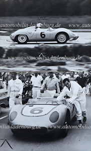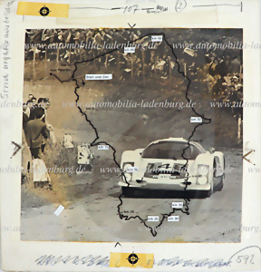1966, original s/w Aufnahme, Vorlage für Zeitschrift Christophorus, Mairesse/Müller auf Porsche 906 (Gesamtsieger), Foto auf Karton, Klischee mit Streckenplan, Details zu Abmessungen...23x22cm