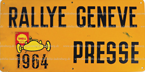 1964, original Rallyeschild "Rallye Geneve Presse", 20x40cm