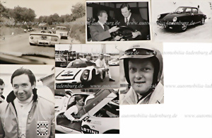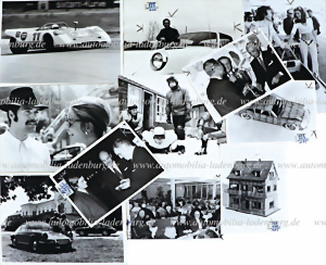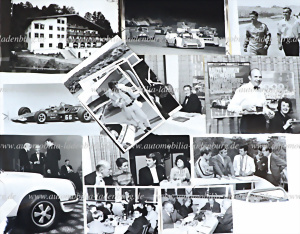 Konvolut 7 original s/w Aufnahmen, darunter Helmut Schmidt im Porsche 917 von Kauhsen/von Wendt, Ferry Porsche, Björn Waldegaard, Pedro Rodriguez, Trainingsfahrten Targa Florio....alle Fotos waren für die Hauszeitschrift Christophorus bestimmt