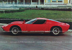Original Fotopostkarte/Werkskarte Lamborghini Miura P400, 10x15cm, Rückseite mit Werbeeindruck BP