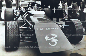 Original s/w Aufnahme Peter Schetty (späterer Scuderia Ferrari Rennleiter) auf Fiat-Abarth, GP Les-Rangiers 1968, 14,5x22cm