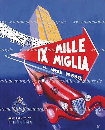 ca. 80er/90er Jahre, Acrylgemälde auf Acrylfarben auf Karton, Veranstaltungsplakat "IX. Mille Miglia 1935", Künstler unbekannt, 70x50cm