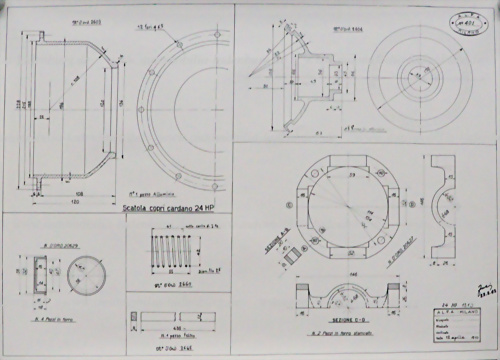 Konvolut 41 Blaupausen 60er Jahre (Fusi), u.a. Getriebekasten für Alfa Romeo 20-30HP 1915; "Piano Carrozzeria" Alfa Romeo 20-30 ES Sport; Alfa Romeo 15HP e 24HP 1910; 40-60HP 1912...., verschiedene Maßstäbe und Formate