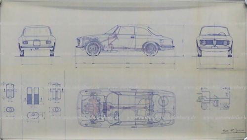 Konvolut 2 Blaupausen darunter Alfa Romeo Montreal 1967, 58x84cm, sowie Alfa Romeo 1300GT Junior, 56x105cm