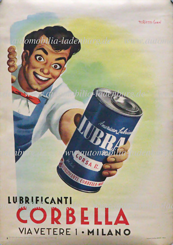 1947, original Werbeplakat "Lubrificanti Corbella", Entwurf "Gian Rosetti", 99x70cm, guter Zustand