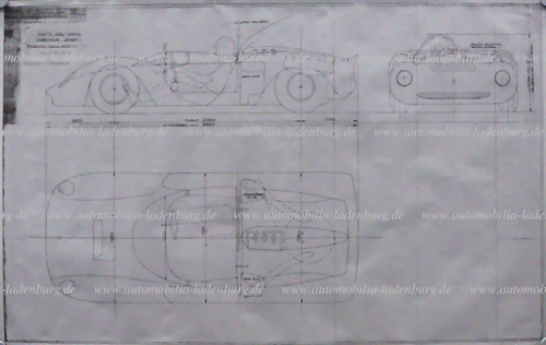 Konvolut 2 Blaupausen (Kopien ca. 80er Jahre), darunter Autotel. 589 Monoposto Ferrari F1 1966, Maßstab 1:5, sowie Autotel. 585 Ferrari Dino Sport, Maßstab 1:5, 74x135cm, sowie 85x138cm