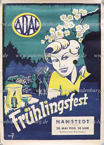 1950, original Veranstaltungsplakat „Frühlingsfest Hanstedt Kreis Harburg, 20.05.1950“, 63,5x45,5cm, ´ guter Zustand