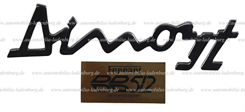 Konvolut 2tlg., darunter Karosserieemblem Schriftzug "Dino GT", 4,5x15,5cm, dazu Plakette / Klebeschild "Ferrari BB 512 Berlinetta Boxer", 2,5x5,5cm