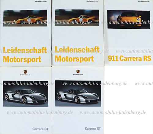Konvolut 5tlg, Verkaufsbroschüren Porsche Carrera GT; 911 Carrera RS, sowie 2x Broschüre "Leidenschaft Motorsport"