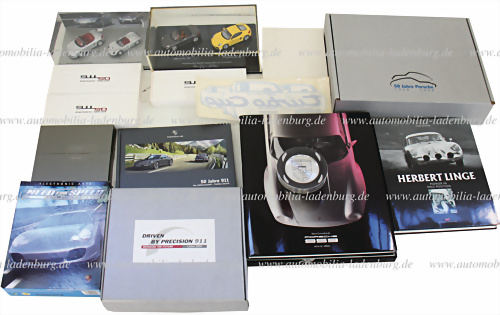 Konvolut 13tlg., darunter Bücher und Werbegeschenke darunter Buch "Porsche 959" von Jürgen Lewandowski, Auflage 1920/2500, mit Kalendermünze; Buch "Herbert Linge - Pionier in Pole - Position" von Frank Wiesner; Mitarbeitergeschenk anlässlich 50 Jahre Porsche, Buch von Peter Vann „Augenblicke, das... mehr