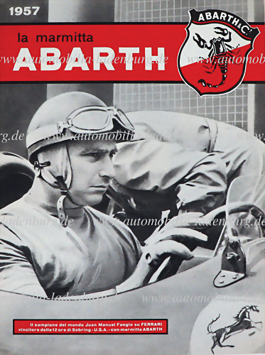 1957, Zeitschrift „La Marmitta Abarth“, 16 Seiten ital. Text, mit zahlreichen Abbildungen der Hersteller wie z.B. Alfa Romeo, Ferrari, Maserati..., bei verschiedenen Rennveranstaltungen wie Mille Miglia, Targa Florio..., guter Zustand, selten