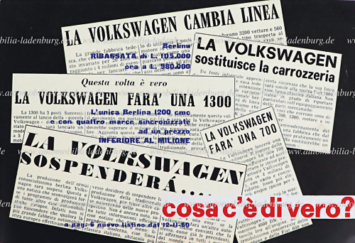 1960, italienisches Verkaufsprospekt, innen mit technischen Angaben Porsche 356 1600 / 1600 Super / 1600 Super 90 / VW Käfer / Bus, mit Preisangaben, 8 Seiten, ital. Text, guter Zustand, selten