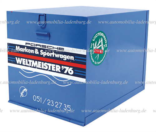 Aufbewahrungsbox mit Aufkleber "Porsche Marken & Sportwagen Weltmeister 76", 31,5x23x23,5cm