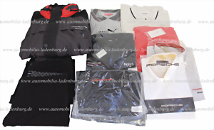 Konvolut Teambekleidung Porsche Motorsport von "Adidas", darunter 6 Poloshirts, Gr. 2x M, 4x XL; 2x T-Shirts XL; Teamjacke / Windbreaker Gr.L, sowie Regenjacke Gr.L, inkl. Rucksack