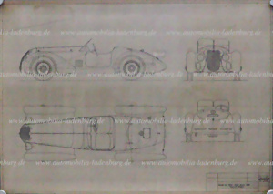 Konvolut 2 Blaupausen (Kopien ca. 80er Jahre), darunter Autotel. 589 Monoposto Ferrari F1 1966, Maßstab 1:5, sowie Autotel. 585 Ferrari Dino Sport, Maßstab 1:5, 74x135cm, sowie 85x138cm