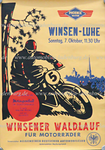 Veranstaltungsplakat „Winsener Waldlauf für Motorräder“, um 1950, 61x43cm, guter Zustand