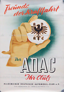 Original Werbeplakat „Freunde der Kraftfahrt – ADAC ihr Club“, 59x42cm, leichte Knitterspuren an den Rändern, ansonsten guter Zustand
