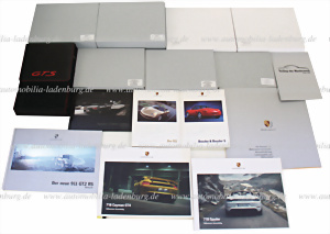 Konvolut 52tlg Verkaufskataloge / Broschüren darunter 4x Der neue 911GT2 RS "Erfurcht" (1x im Karton Carbon Look); 718 Cayman; 718 Spyder; Boxster / Boxster S im Originalkarton; 2x Cayman R; Der neue Cayman "Sturm und Drang"; Boxster Spyder; 2x Der neue 911 Turbo "Effizienz braucht Leistung"; 2x "Achtung - Der neue 911 GT2"; Porsche Boxster GTS, im Lederumschlag und Roadbook; Boxster S Black Edition; 911 Turbo "Testing the Masterwerk Sitges 2006"; 2 von Walter Röhrl handsignierte Verkaufskataloge Porsche Boxster / Boxster S und Porsche 911, dazu weitere Verkaufskataloge 911 Carrera, 968CS, 911 Speedster, 928, 30 Jahre 911... dazu Broschüren wie 50 Jahre Porsche eine Bilanz; Porsche Motorsport, Porsche Supercup