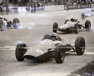Konvolut 10 großformatige s/w Aufnahme jeweils professionelle Abzüge neueren Datums, darunter 4x Mike Parkes auf Ferrari 275P2 (#0832) 1000KM Nürburgring 1965; 3x Lorenzo Bandini auf Ferrari 158, GP Belgien 1964; 3x John Surtees auf Ferrari 156 Aero GP Italien 1963, je 40x50cm