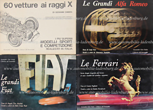 Bücherkonvolut 4tlg., darunter "Le Ferrari" von Gianni Rogliatti; "Le Grandi Fiat" von Tito Anselmi; Le Grandi Alfa Romeo" von Luigi Fusi, sowie "60 Vetture ai raggi X" von Giovanni Cavara
