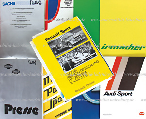 Großes Konvolut Motorsport-/ und Rallye Presseinformationen darunter z.B. Dunlop in der DRM 1981; Großer Preis von Deutschland Hockenheim 1981; Audi Sport "Kilian Tuning"; Ford Berkenkamp Racing 1981; ADAC Sachs Winter Rallye 1981; Ford Deutsche Rallye Meisterschaft 1980; Alitalia Alfa Romeo 1980; KWS Motorsport; Audi Motorsport 1980; Lancia DRM 1980; Fiat Sportprogramm 1981; Irmscher Sport Club; Opel Kadett Cup 1981; Nissan / Datsun Hunrück Rallye 1980...