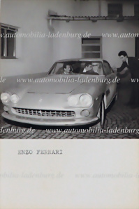 Original s/w Aufnahme Enzo Ferrari am Steuer des Ferrari 330 GT 2+2, neben dem Wagen ist Pat Boone zu sehen, Werksgelände Modena, 15x10cm, seltenes Foto