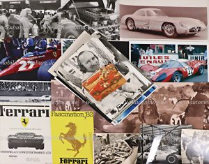 Konvolut 37tlg, Farb- s/w Aufnahmen, größtenteils Abzüge, aber auch einige Originale, dazu Ferrari Verkaufskatalog 1959-1973 16 Seiten engl. Text, sowie Ferrari „Fascination `82” Faltprospekt franz./ de. Text, sollte besichtigt werden