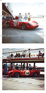 1963, Konvolut 2 orig. Farbaufnahmen, Nassau Governors Trophy, darunter Ferrari Dino 268 SP (#0798), sowie Ferrari 250 P (#0810), je in der Boxengasse, 9x9 cm