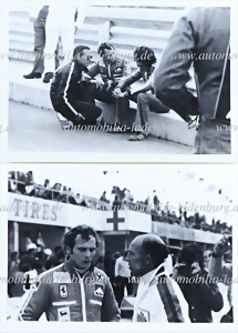 Um 1975 Jahre, Konvolut, 2 orig. s/w Aufnahmen, Niki Lauda, je im Gespräch u.a. mit Luca di Montezemolo, 9x13 cm