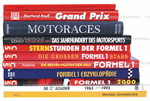 Bücherkonvolut 11tlg. darunter z.B.: „Motoraces” von Newes; „Die Grossen Formel 1 Stars” von C.P. Andorka; „Das Jahrhundert des Motorsports” von L. Boschen, etc. überwiegend deutscher Text, weitere Titel entnehmen Sie bitte unserem Katalogbild.
